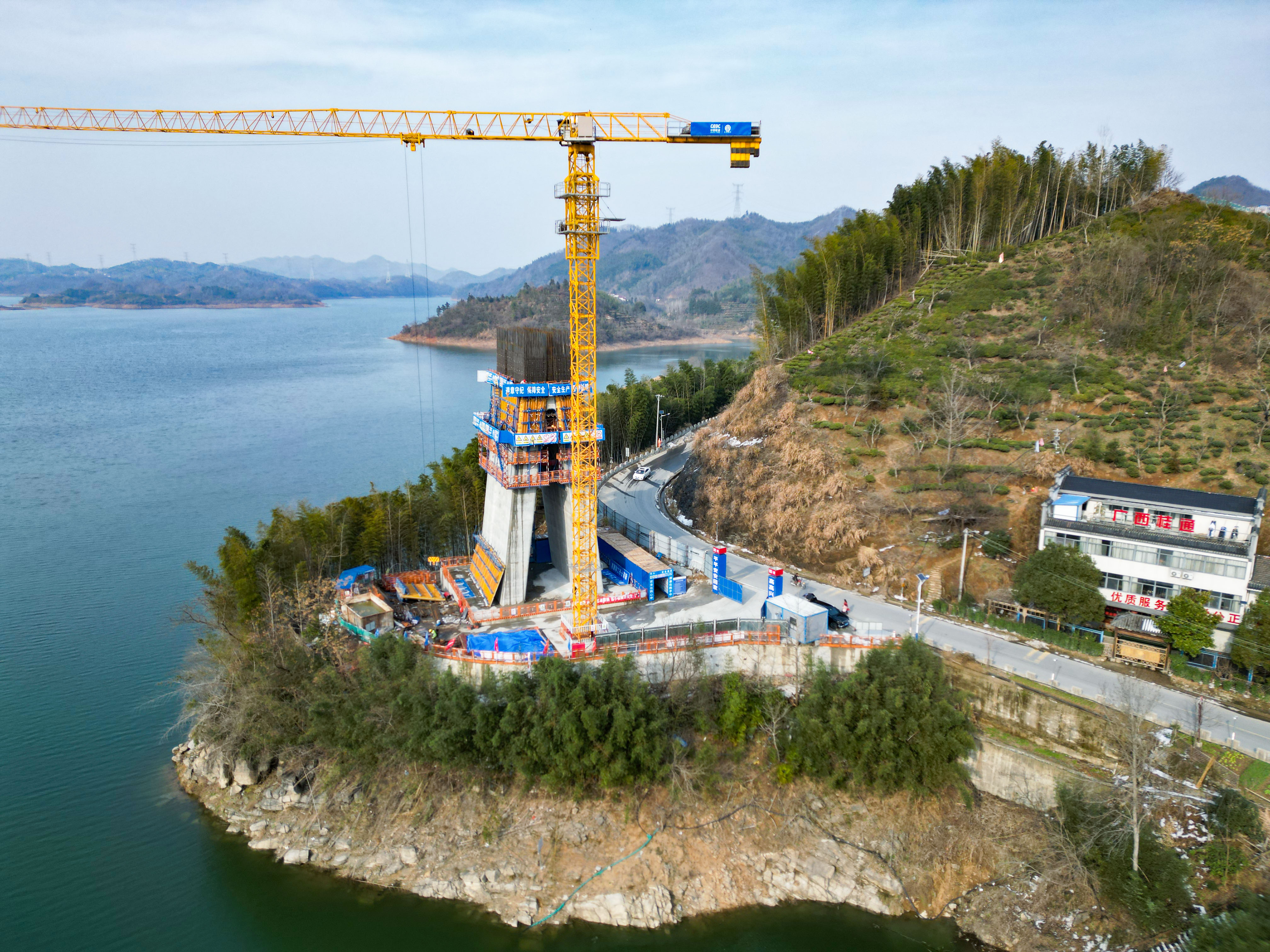 NEWS春山如黛,碧水含煙。在皖西大別山深處,響洪甸水庫西南角,中國能建葛洲壩集團投資建設的和襄高速六安段鮮花湖特大橋正拔節(jié)生長,為項目年底如期通車提供堅實保障。